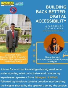 If you are someone who would be keen to collaborate with us in the series and have input on how we can facilitate that. Do reach out to us at ritika@old.trinayani.org. There is lots more to come your way in the next few months. Until then you can watch our previous session here: https://youtube.com/playlist?list=PLaSE40_C74R5yLhEjLvjjBxCJ4yiejx2g