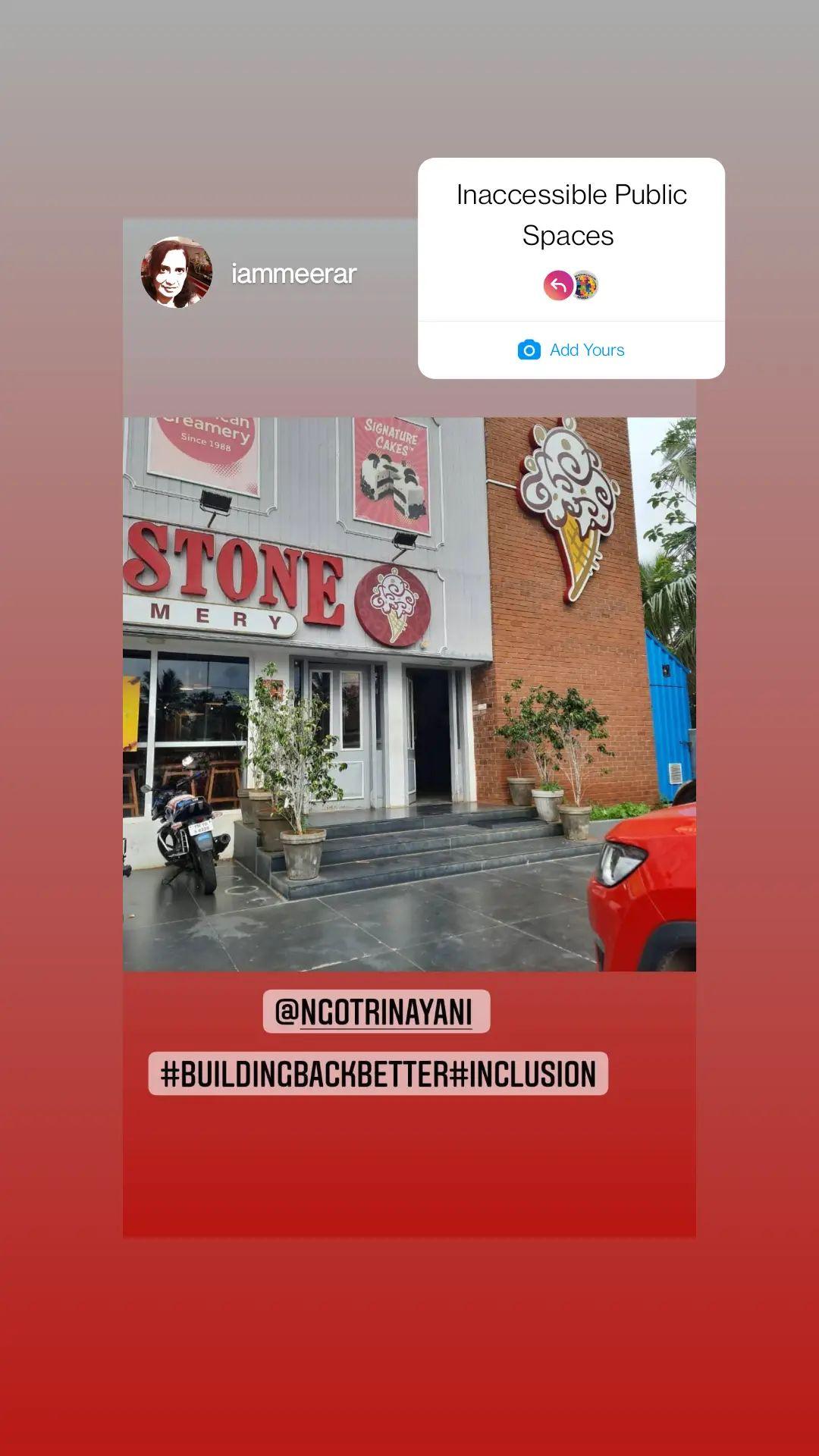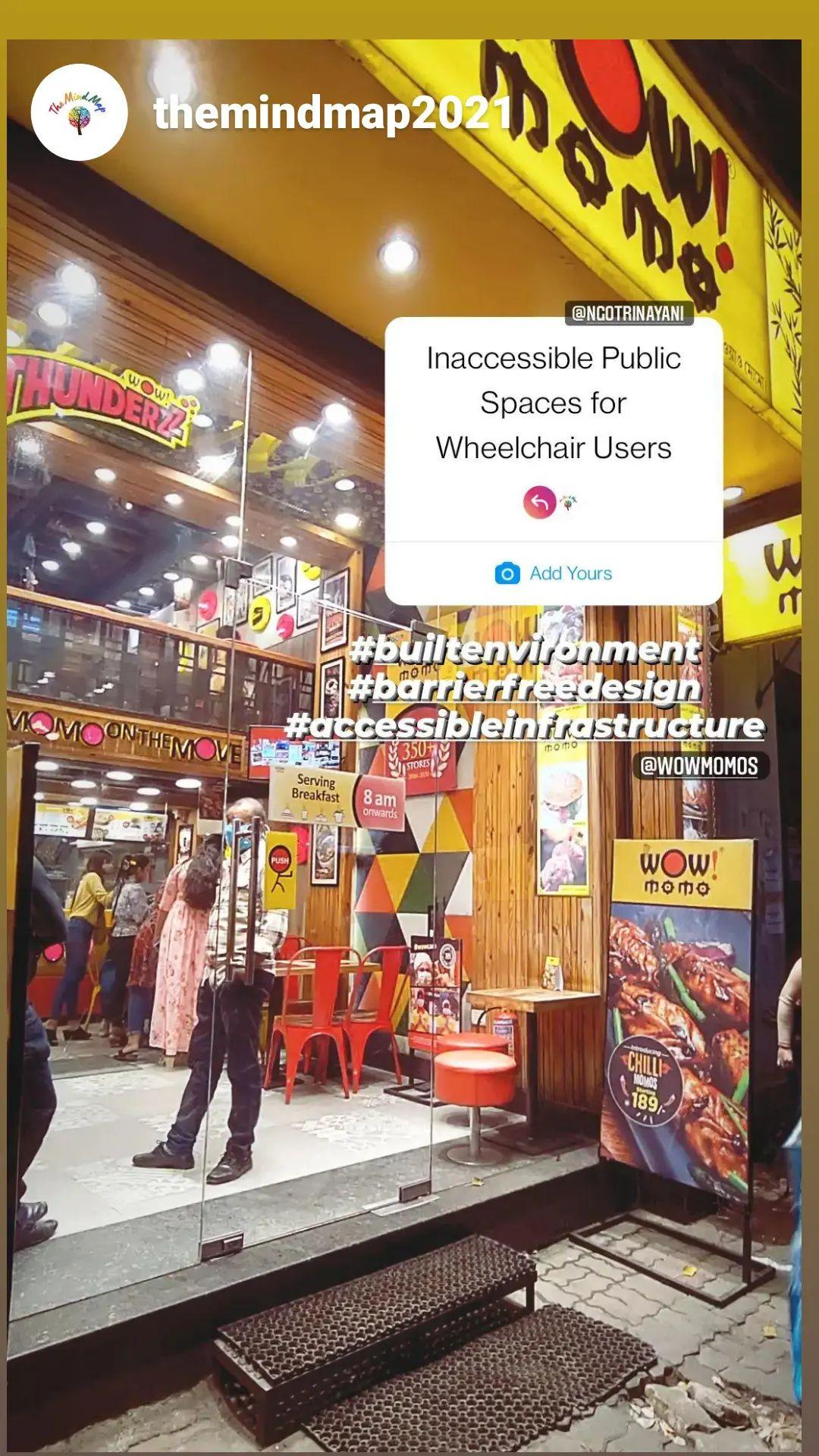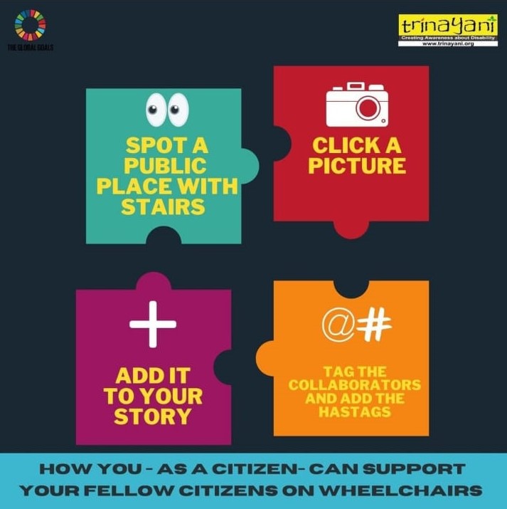 We requested the audience to keep an eye out on structures that have entry points that pose a barrier for wheelchair users to enter- one of the key structures are stairs. This can be of any public place that is meant to be accessed by ALL.