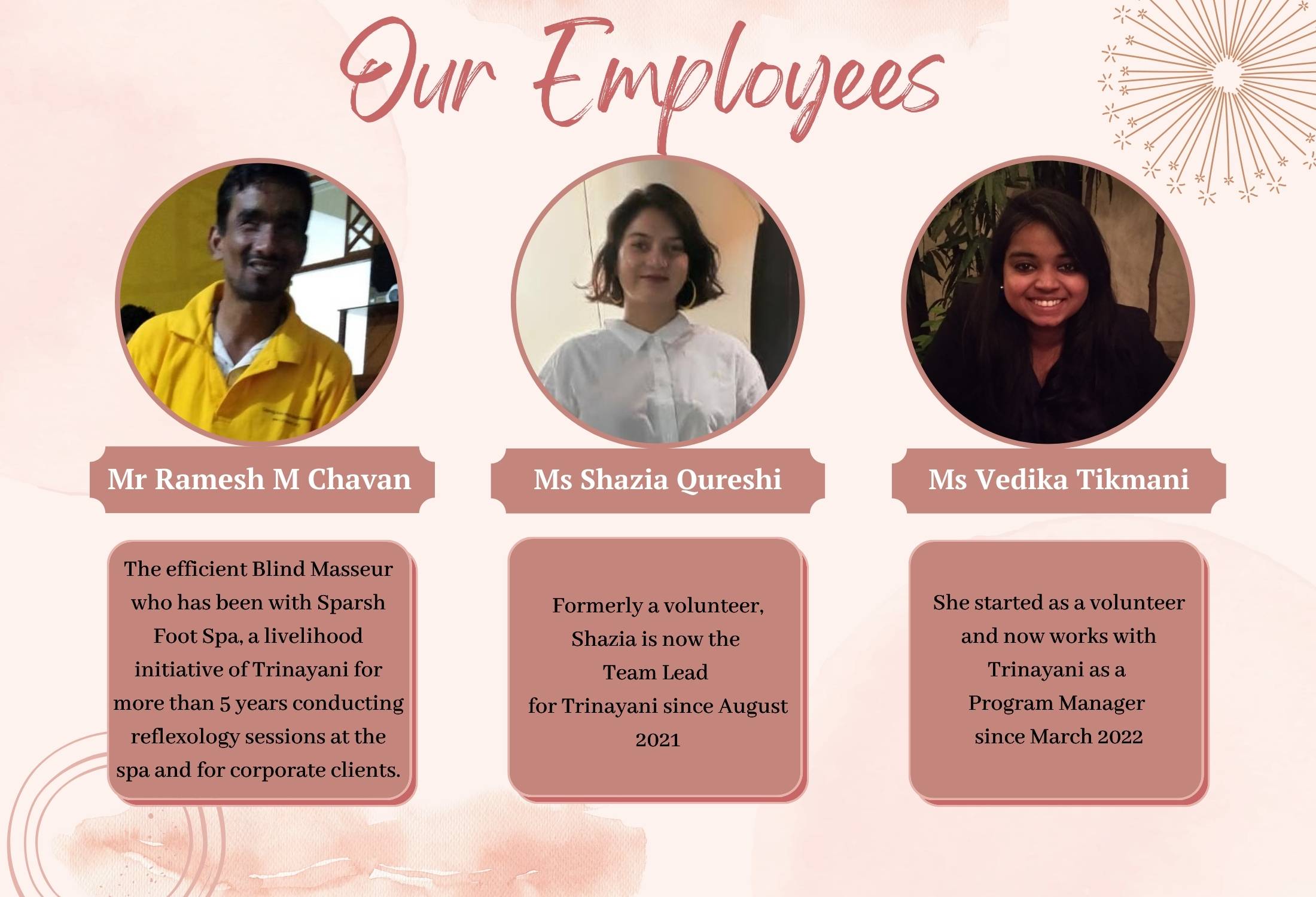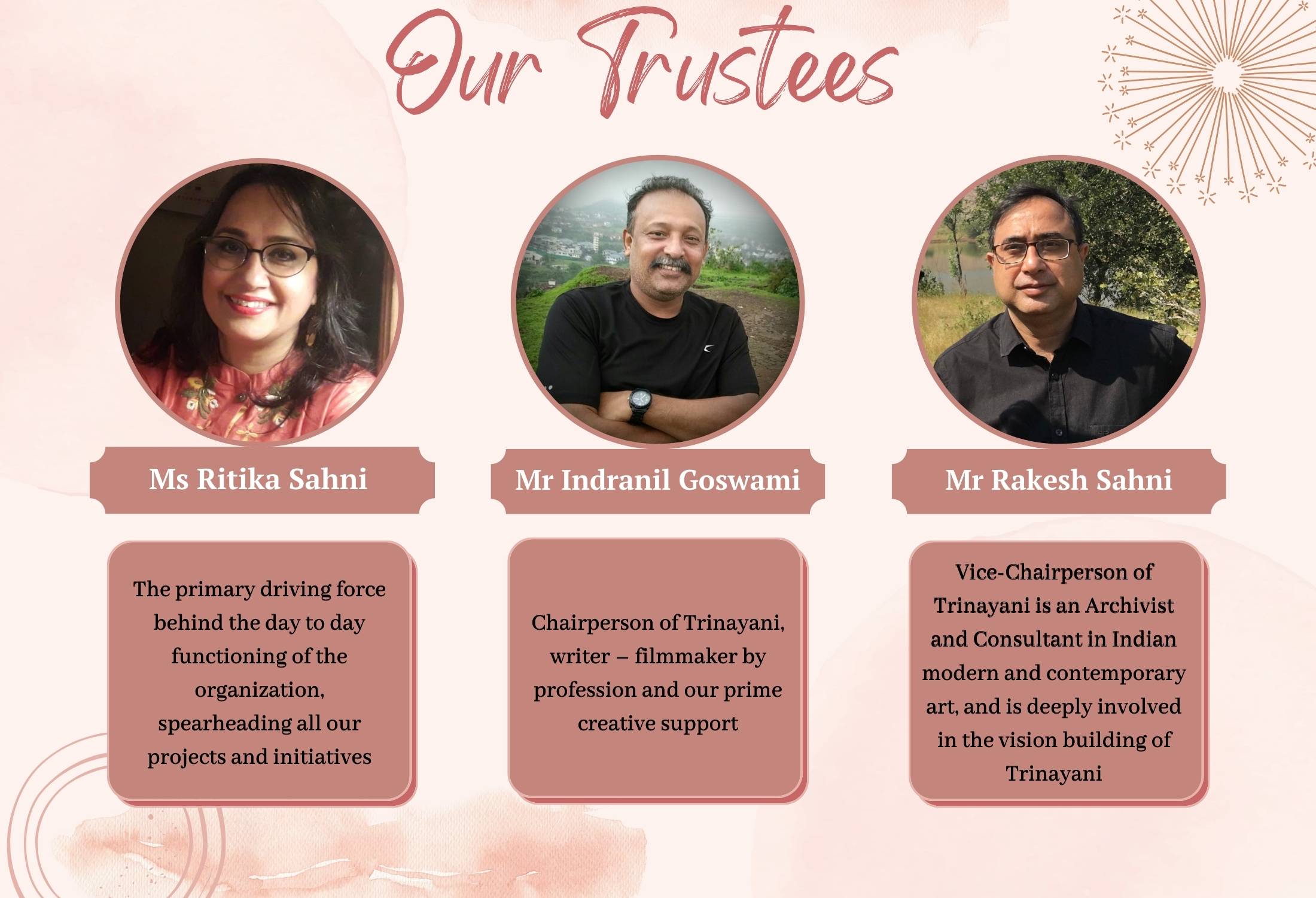 The organisation started by Ms Ritika Sahni has in its journey of 16 years received support from many well-wishers. Since our first employee came on board in August 2021 we would like to introduce you to the key members of the Trinayani team: