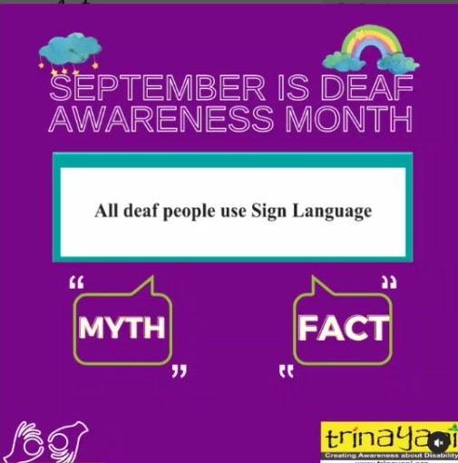 IT’S A ‘MYTH’! Not all deaf individuals know sign language and need to know it. It is a personal choice as many can lip read, speak and use other modes of communication as they deem fit.