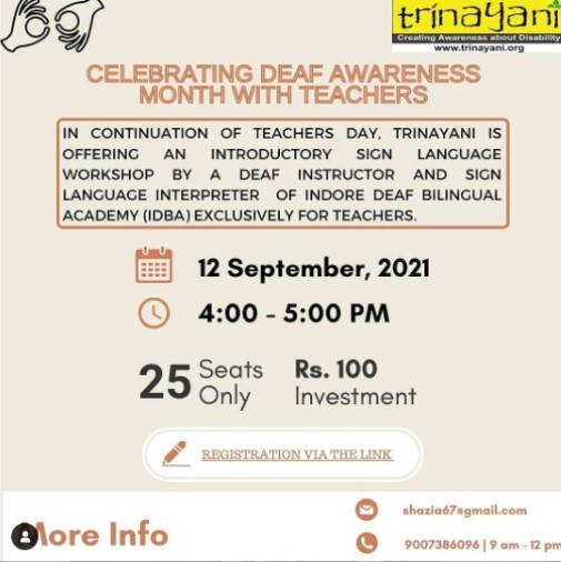 As a part of the Teachers day celebration, a sign language workshop was organised for the teacher to upgrade their skills, keeping in mind that sign language will be becoming a subject for the classes 9-12 making it and significant and essential skill.